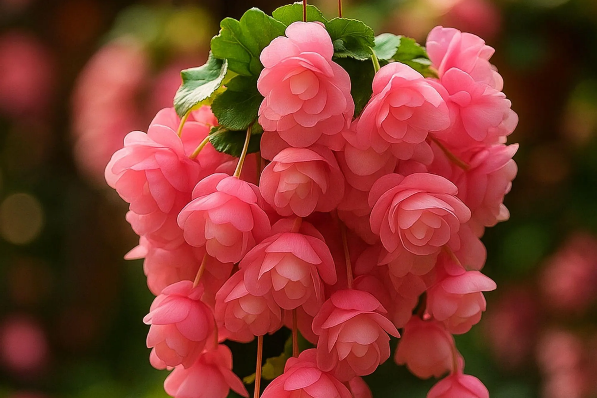 - Produces stunning, fluffy blooms in shades of pink and white.