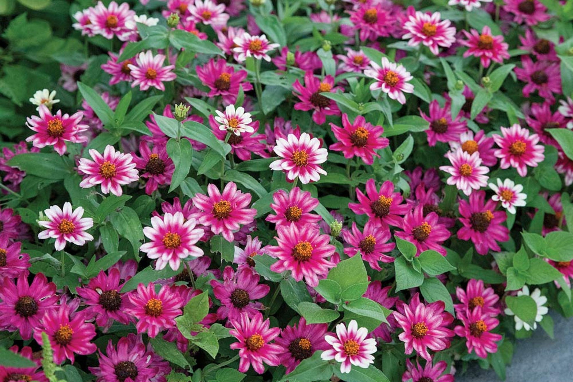 zinnia seeds, profusion zinnia, bicolor flowers, disease resistant, butterfly plants, low maintenance, USA seeds, , award winning, container flowers, border plants, cut flower garden, summer blooms